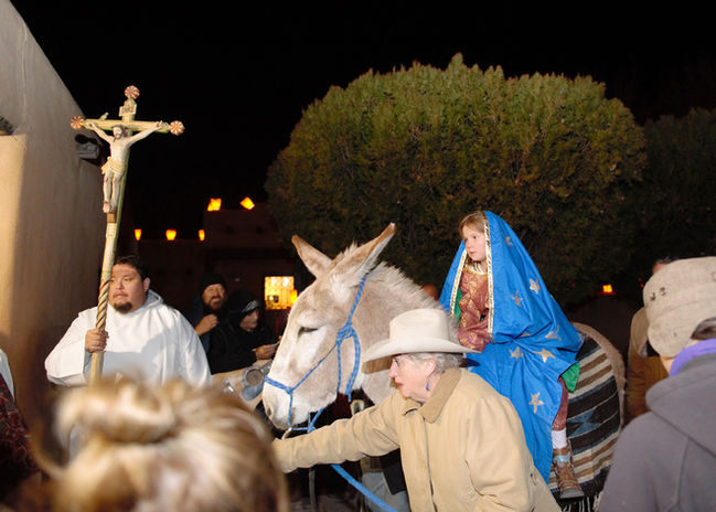 With time, the Posadas began to be celebrated in the neighborhoods and in the family houses, becoming even more popular. Las Posadas begins with the recitation of the Rosary, which is followed by the songs of those who ask for a place to rest and those who offer it. The attendees who ask for posada are grouped outside the house or church, along with two children who identify themselves as Mary and Joseph or who carry pictures of Mary and Joseph, the pilgrims going to Bethlehem.